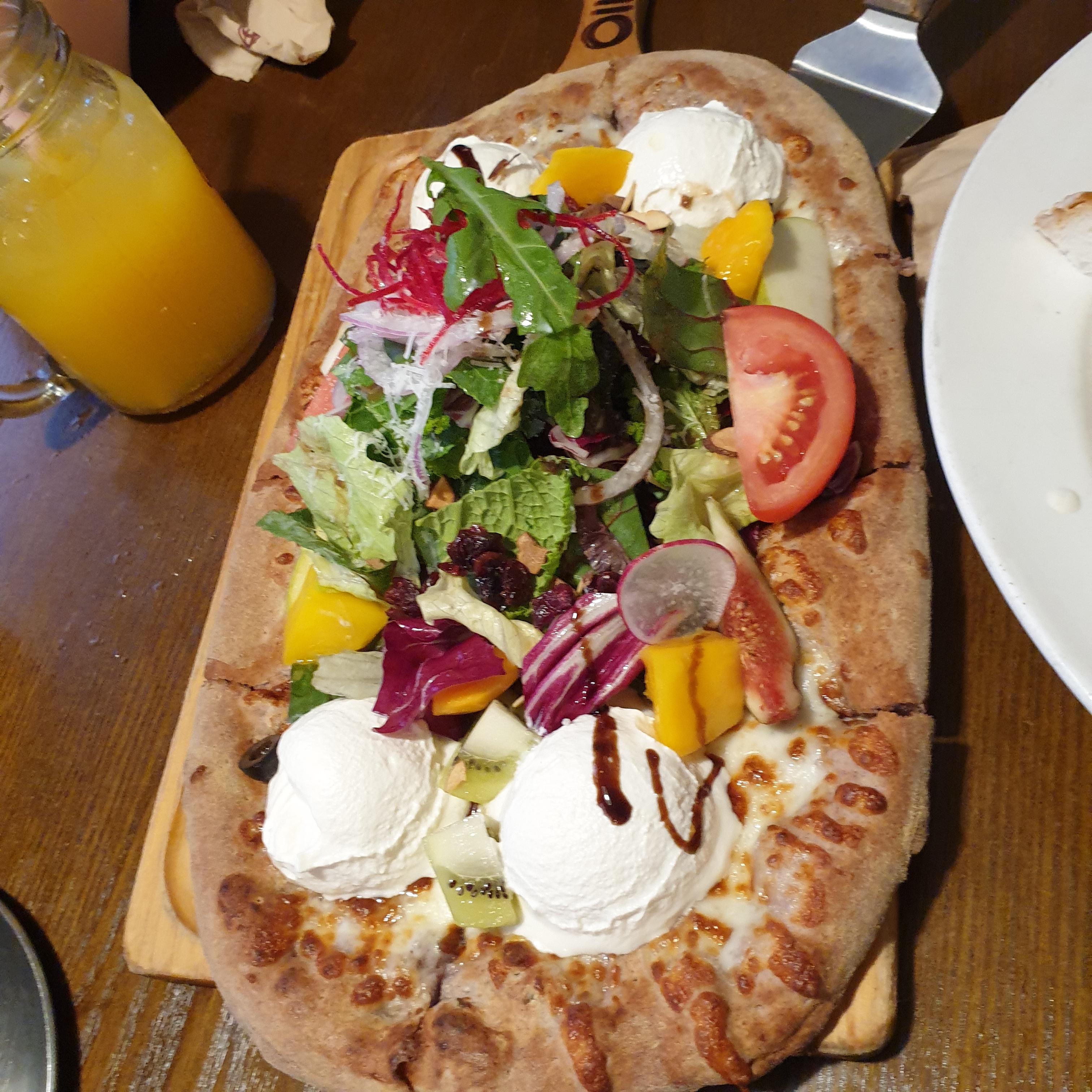 하이라이트 피자~ 올리앤 라코타치즈 피자 야채가 듬뿍 올라가 있어요~